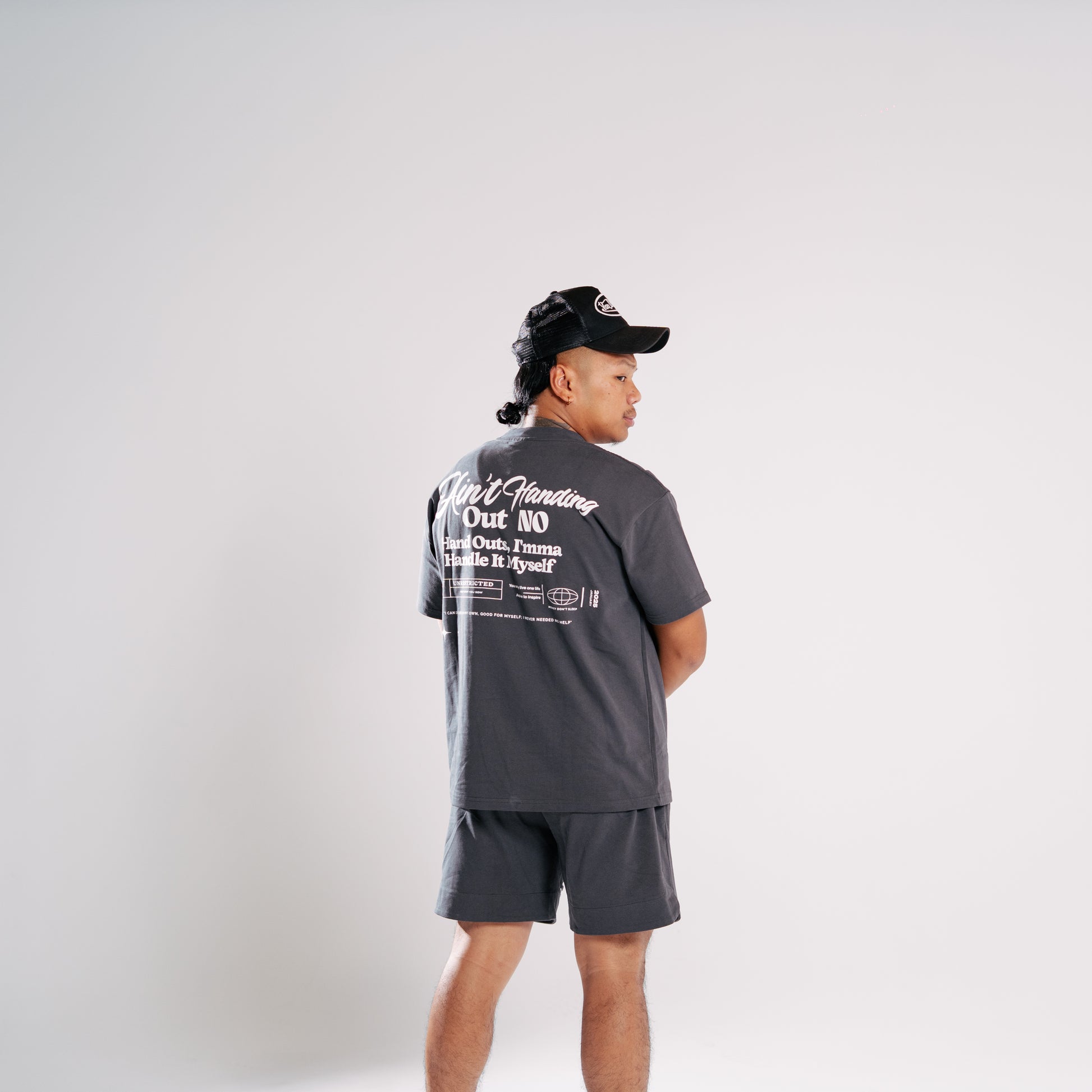 Made from premium 250 GSM cotton, this dark grey heavyweight tee delivers durability, comfort, and a structured fit. Designed for those who take control, it features the powerful statement "Ain’t handing out no handouts, imma handle it myself" in bold text. The high-quality print/embroidery ensures a striking contrast against the dark grey fabric, making this tee a standout piece. Perfect for everyday wear, it combines style and attitude with long-lasting quality.